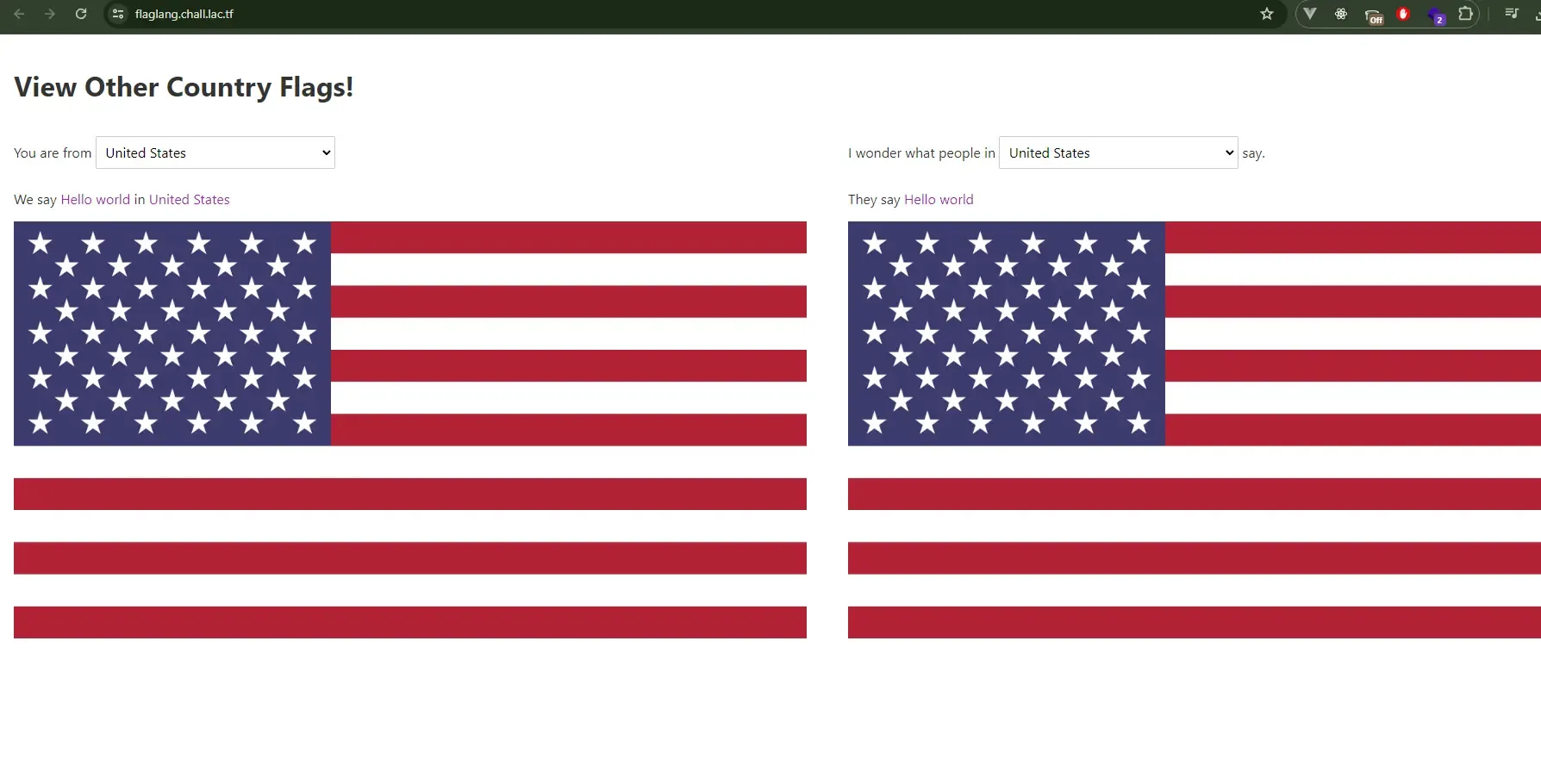 });So I wonder, what if I simply select the Flagistan option of the second drop-down menu?